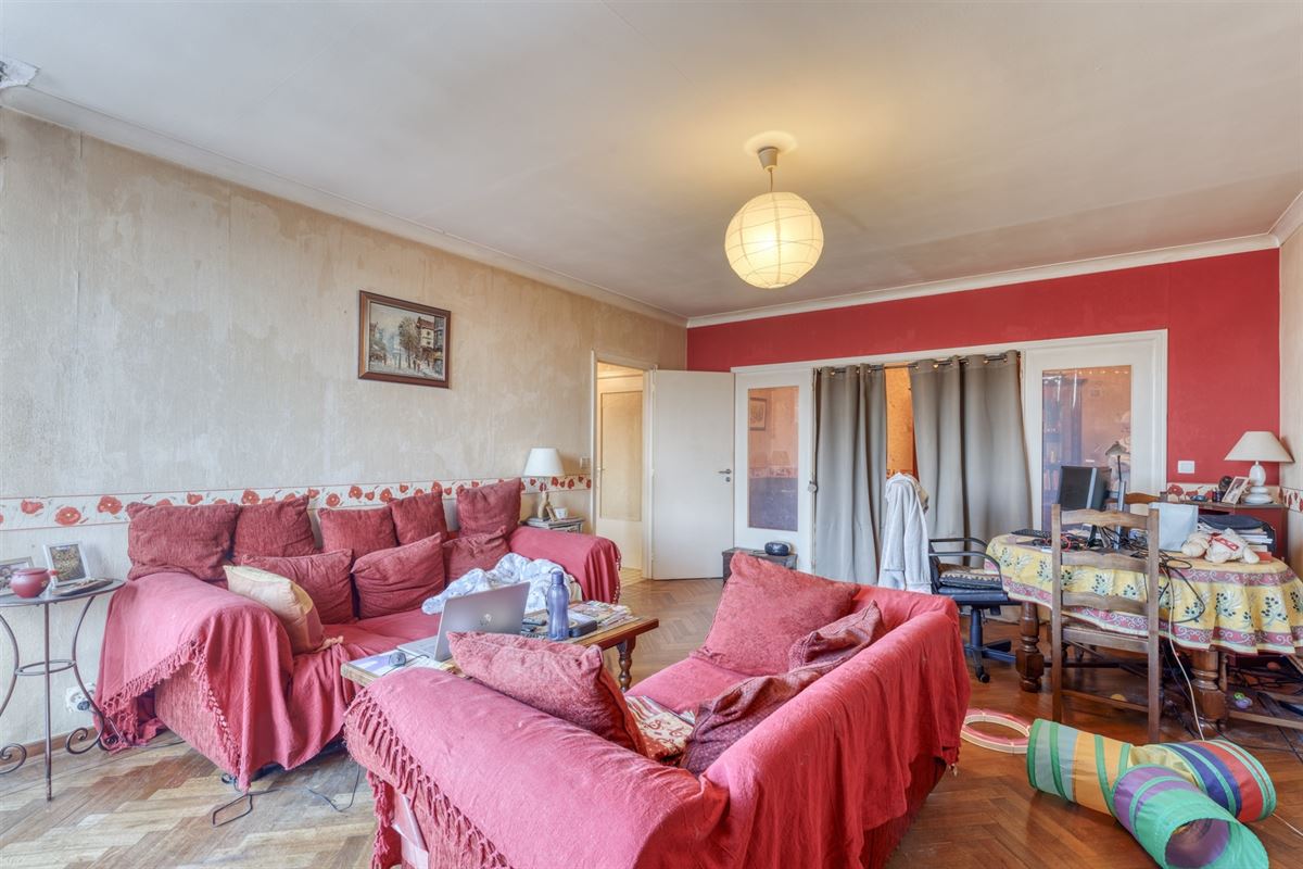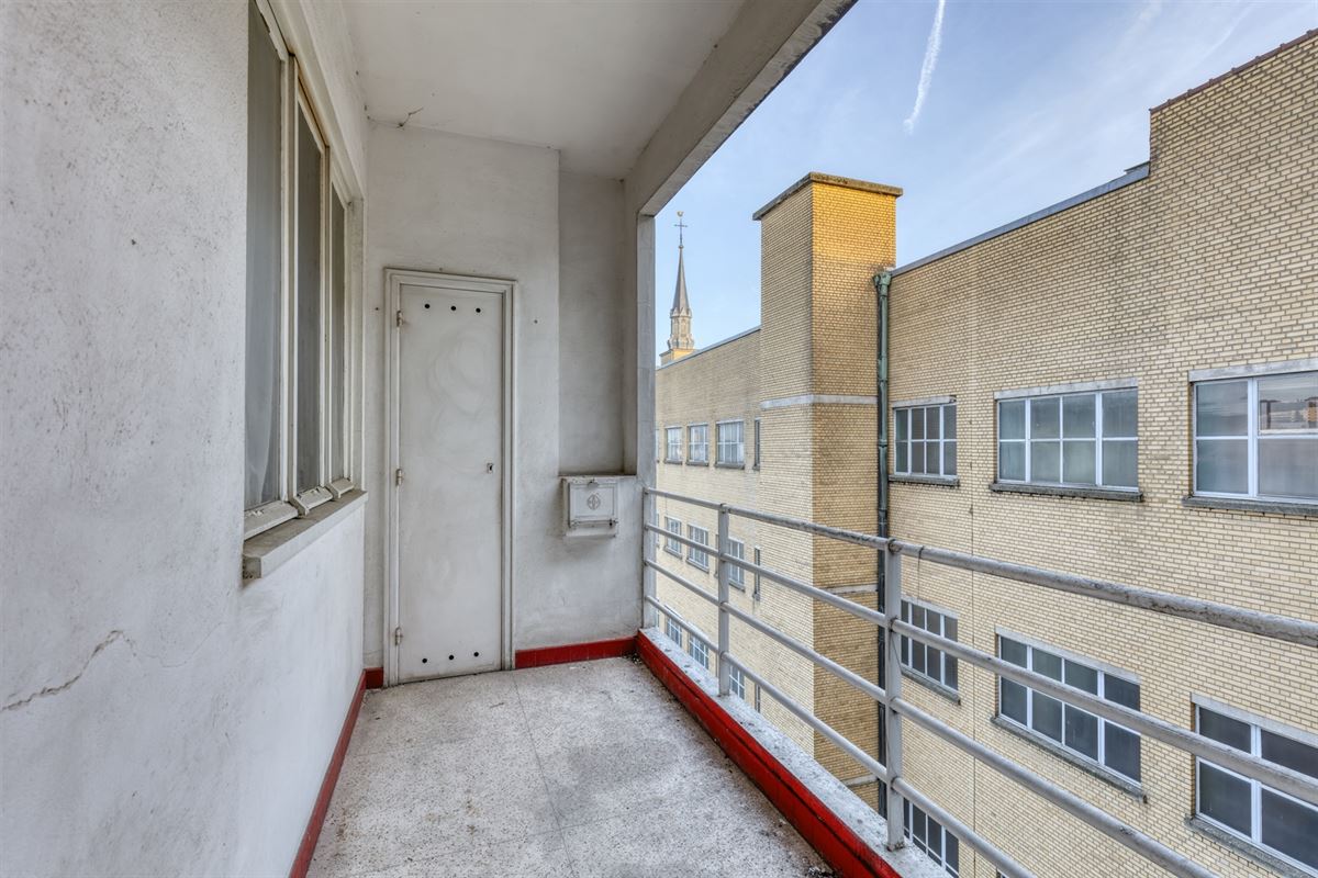 Bel appartement à rafraîchir de +- 111 m² (d'après l'acte) situé au 11ème étage de la résidence "RÉGINA" en plein centre-ville, comprenant un vaste hall d'entrée carrelé 4.40x2.05, un séjour (avec parquet) 6.00x4.40, une cuisine meublée 4.35x3.20 une arrière cuisine 1.60x3.00, un vestiaire avec w.c., un hall de nuit, un débarras, une salle de bains 3.00x2.60 (baignoire et lavabo), deux chambres 4.50x3.05 - 4.40x3.90 donanant accès à une grande terrasse 2.20x6.50 avec un débarras extérieur et en sous-sol une cave 6.