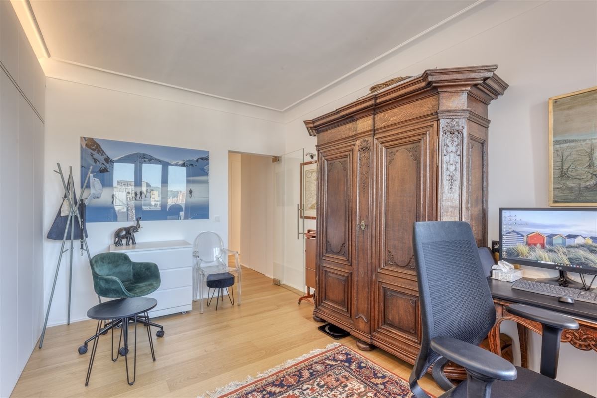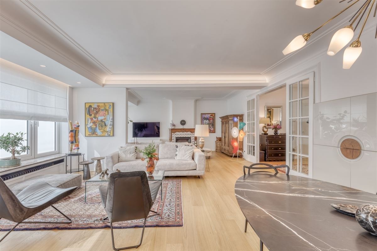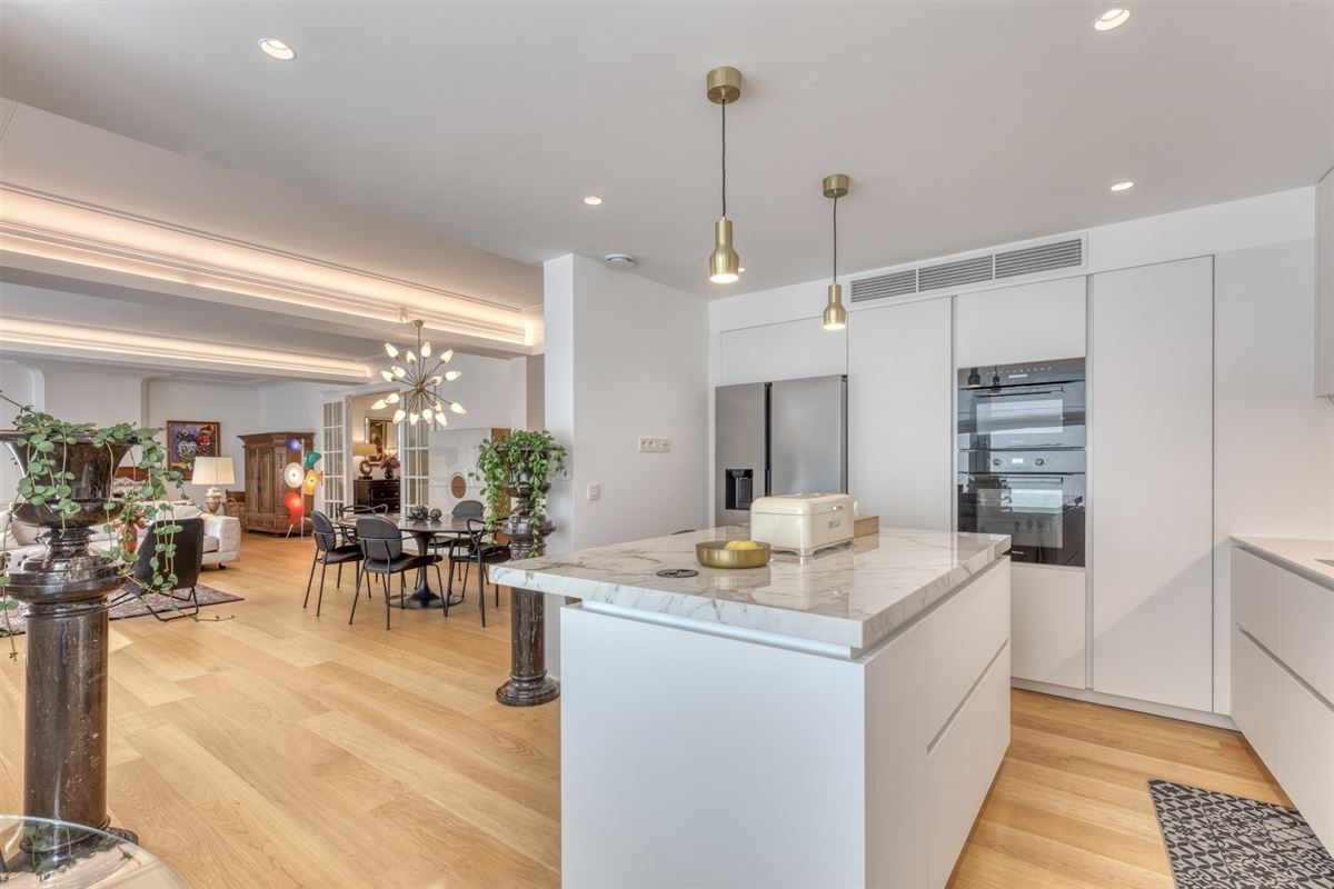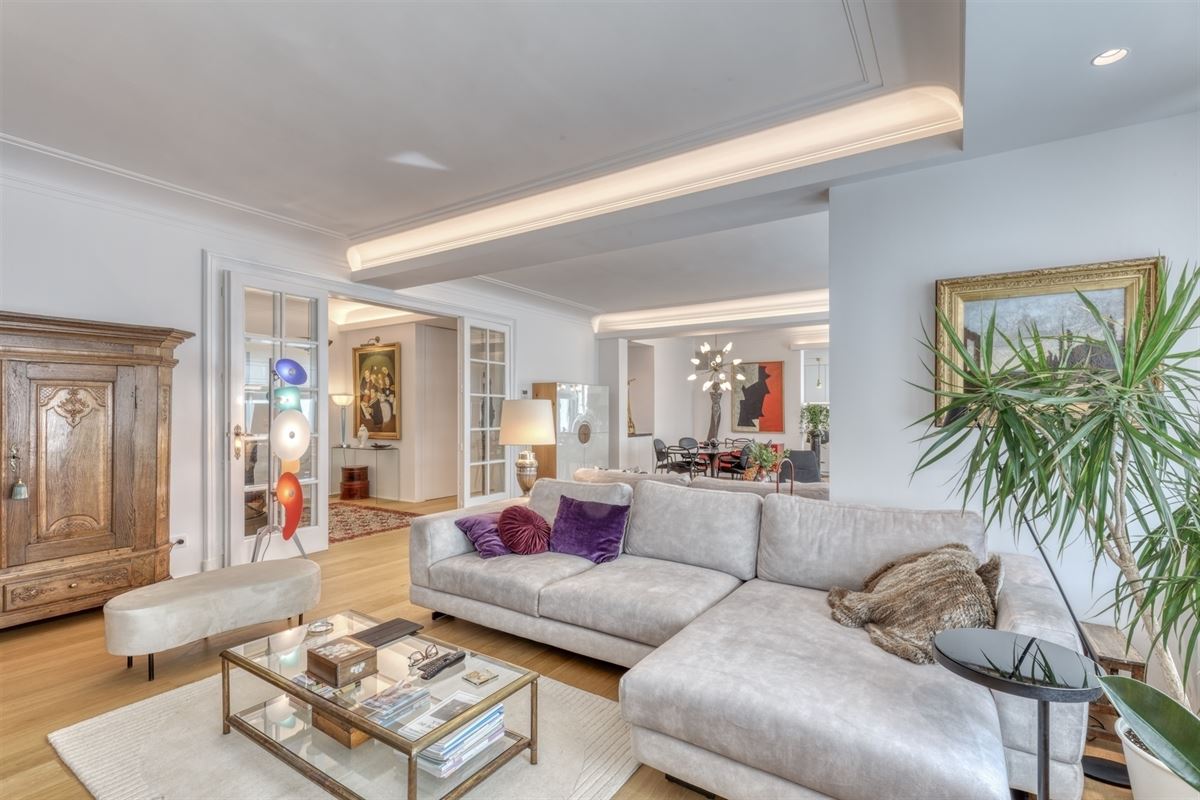 Découvrez cet appartement d'exception situé au cœur de Liège, offrant une combinaison idéale de confort moderne et de style sophistiqué de grand standing, entièrement rénové en 2023, comme neuf, avec des prestations de 1er qualité, situé au 6ème étage de la résidence ANSPACH de +- 190 m² avec un box-parking jouissant d'une excellente situation comprenant un spacieux hall d'entrée lumineux avec vestiaire ouvert sur le séjour 11.15x5.65 (deux salons et une salle à manger) avec feu ouvert, une cuisine entièrement équipée 2.80x490, un hall de nuit, une salle de bains (douche et lavabo) avec placard/ buanderie, une chambre 3.35x4.60, une suite parentale +- 40m² (chambre, sdb, w.c. et dressing), une cave n°14 et un box/parking n°6 au RDC de l'immeuble.