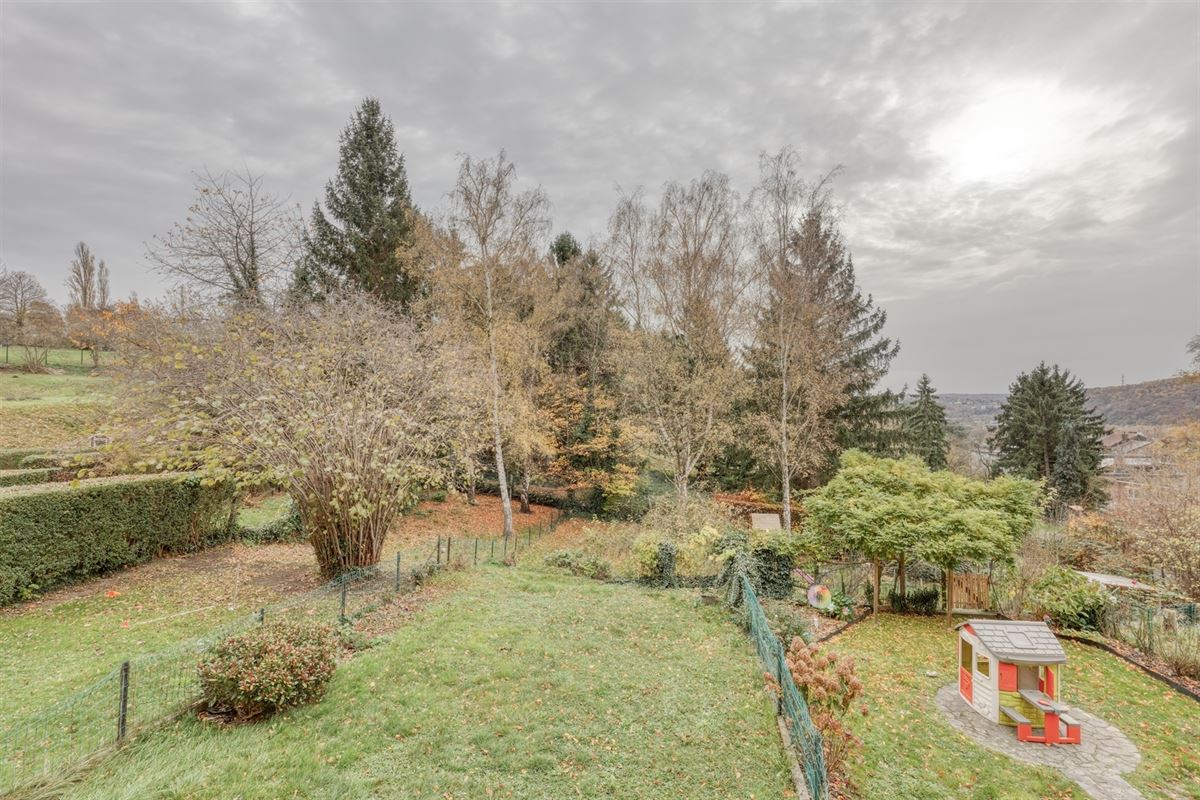 Jardin de 365 m² avec une vue dégagée à l'arrière. Châssis bois et alu avec simple et double vitrage, PVC avec double vitrage à l'arrière (récent) et volet électrique, chauffage central au gaz (chaudière à condensation).