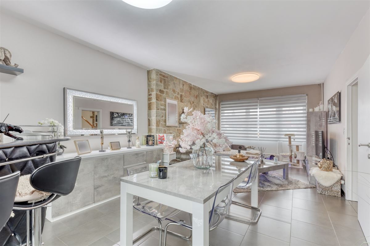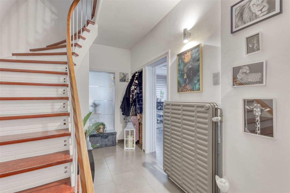 Agréable maison bel étage en parfait état générale de +- 145 m² avec un garage et un jardin comprenant, au SOUS-SOL un garage 4.00x5.95, trois caves 1.90x2.00 - 1.90x2.00 - 2.5x1.15, au REZ-DE-CHAUSSÉE un hall d'entrée 4.05x2.50, un w.c., un séjour 4.00x8.00, une cuisine équipée 2.50x5.15 (frigo/congel, four, hotte, taque vitro, évier, lave-vaisselle), une terrasse de +- 40m² et un jardin de +- 180m², au 1ER ÉTAGE un hall de nuit 2.45x2.50, trois chambres 3.95x4.00 - 4.00x2.75 - 2.50x2.50 et une salle de douches 1.60x2.50 (douche, lavabo et w.c.).